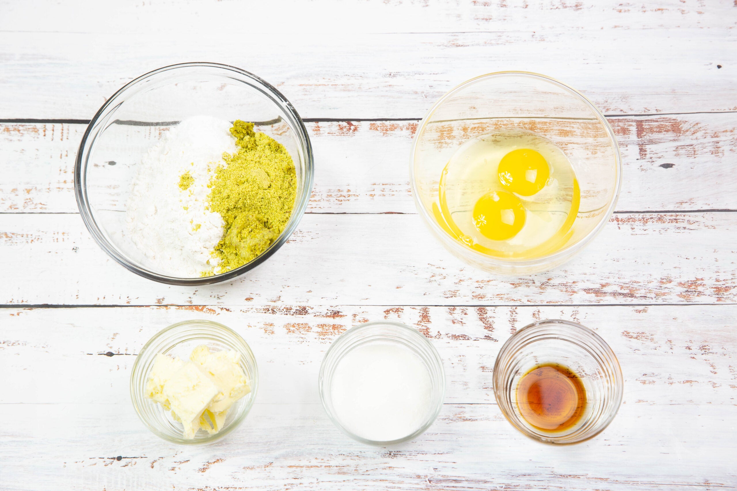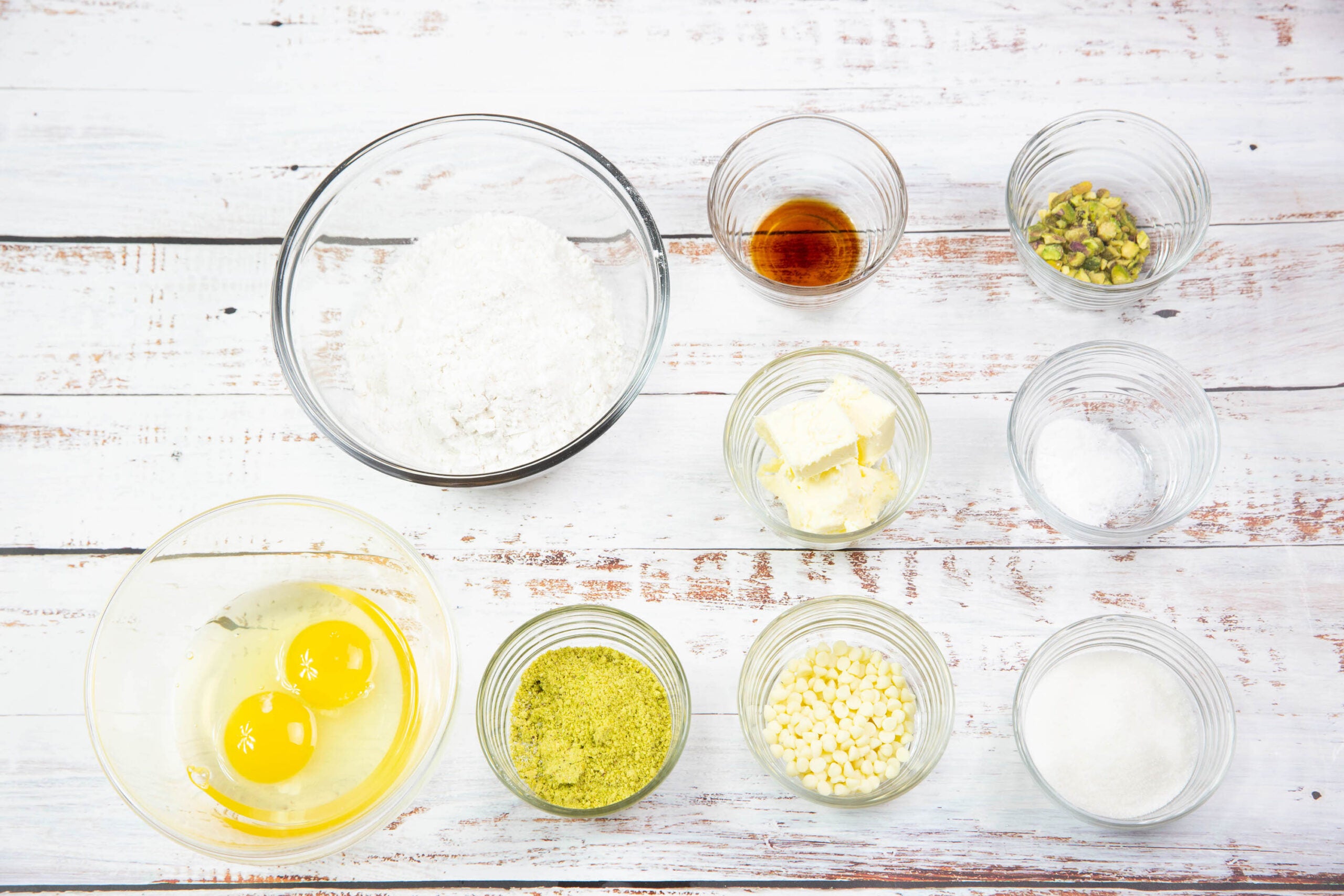 What Ingredients are used to make Pistachio Rosewater Madeline Muffins Kit?