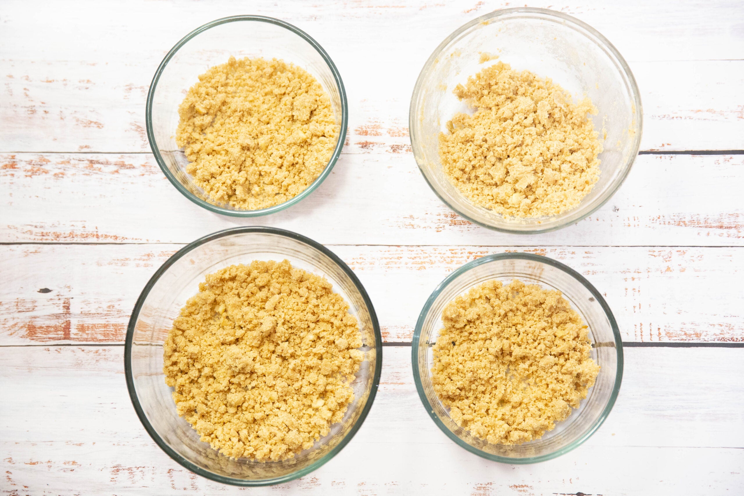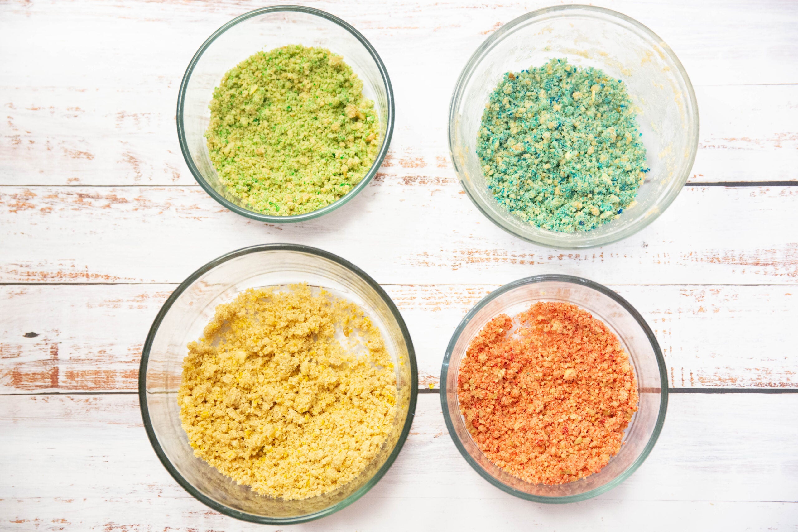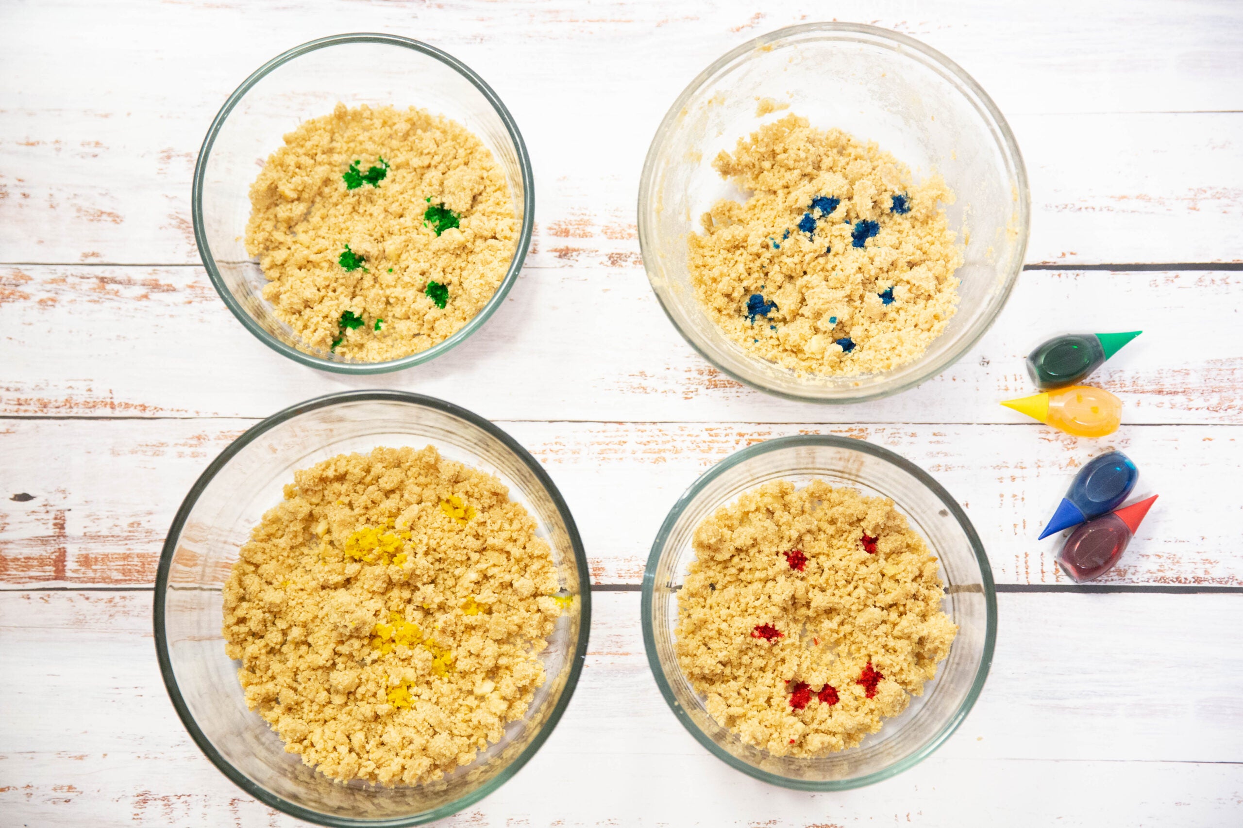 Divide your mixture into 4 equal parts and put it in 4 separate bowls